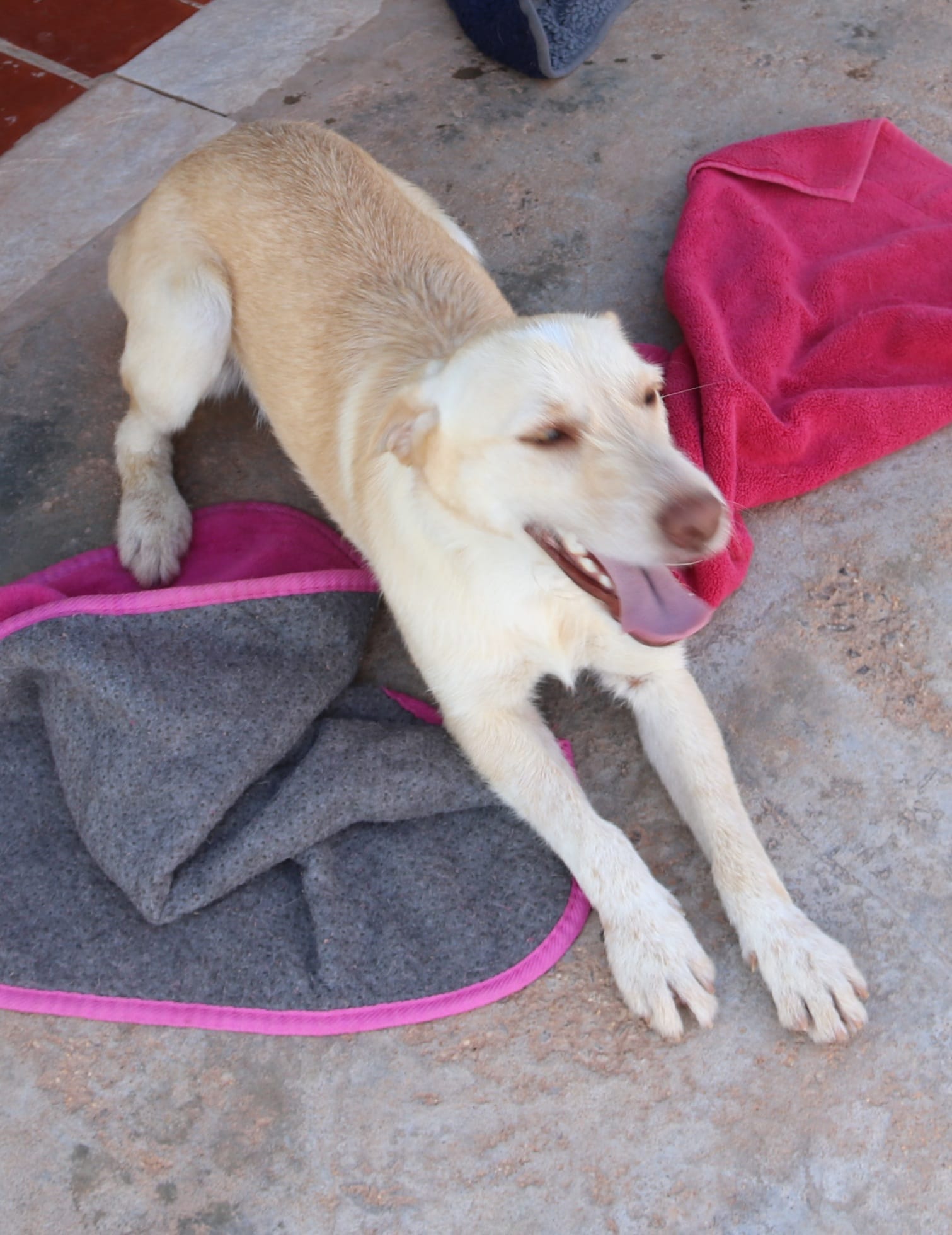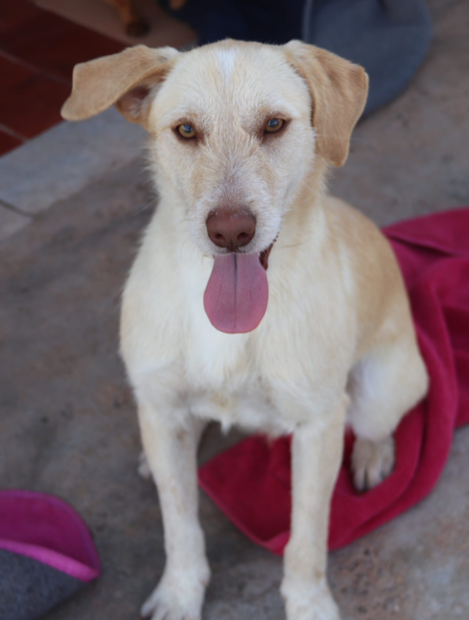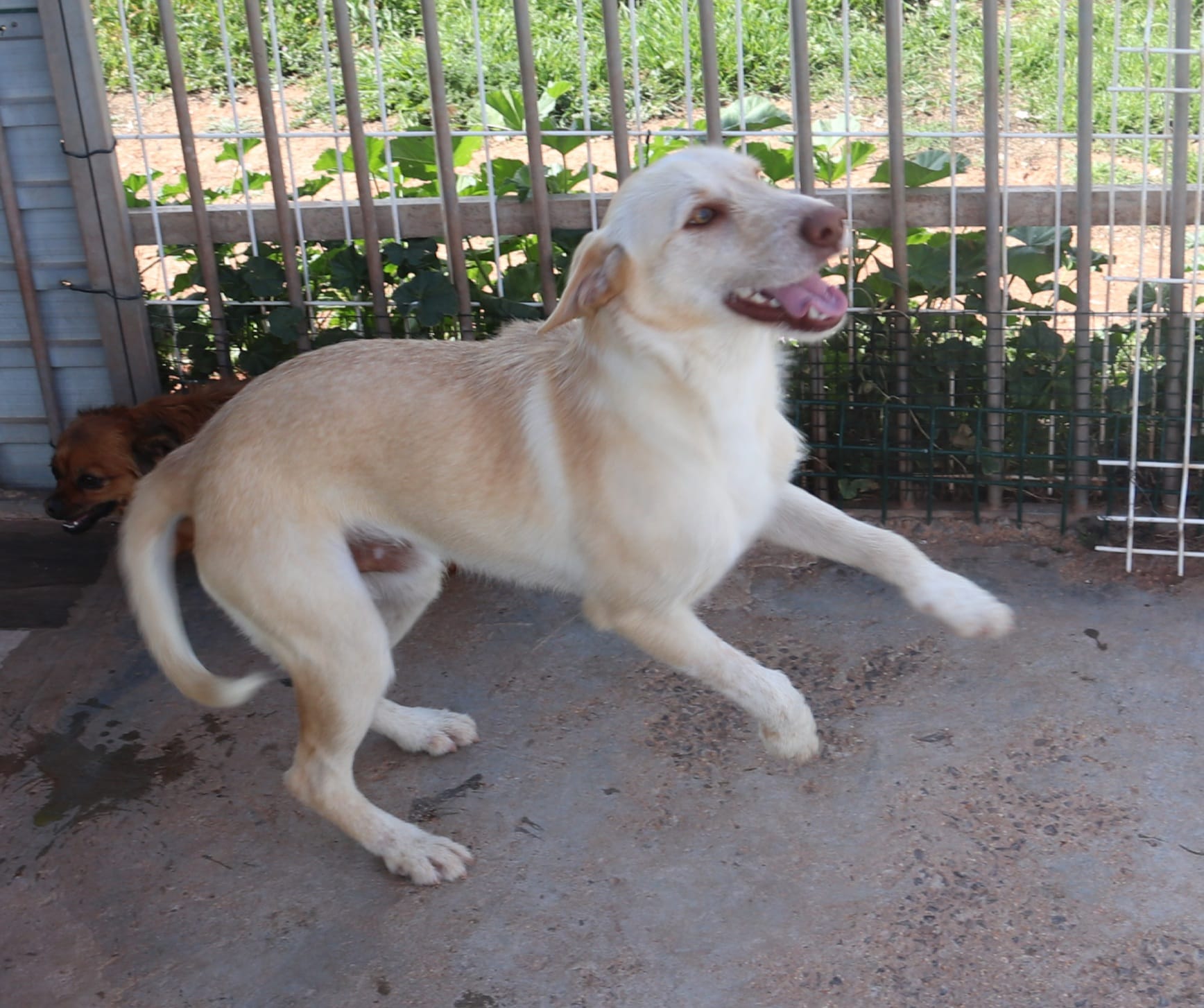 Bruno wurde zusammen mit der kleinen Mini auf der Strasse gefunden. Die beiden wurden mehrere Tage lang an verschiedenen Orten rund um Castro Marim in Portugal gesehen. Immer waren die beiden gemeinsam unterwegs, obwohl Mini um ein vielfaches kleiner und langsamer war, hat Bruno immer auf seine kleine Freundin gewartet. Schlussendlich landeten die beiden zusammen in unserem Tierheim. Bruno ist ein ganz aufgeschlossener, fröhlicher und aktiver junger Hund. Er ist imme rzu Späßen aufgelegt und spielt und tobt für sein Leben gerne. Er ist freudlich zu allen Zwei- und Vierbeinern und scheint noch nicht viel Schlechtes in seinem Leben erlebt zu haben. Bruno ist ein Podencomix und kann daher auch einiges an jagdlichen Ambitionen mit sich bringen. Bruno ist ein perfekter Begleiter für eine sportliche Familie, auch gerne mit standfesten Kindern.