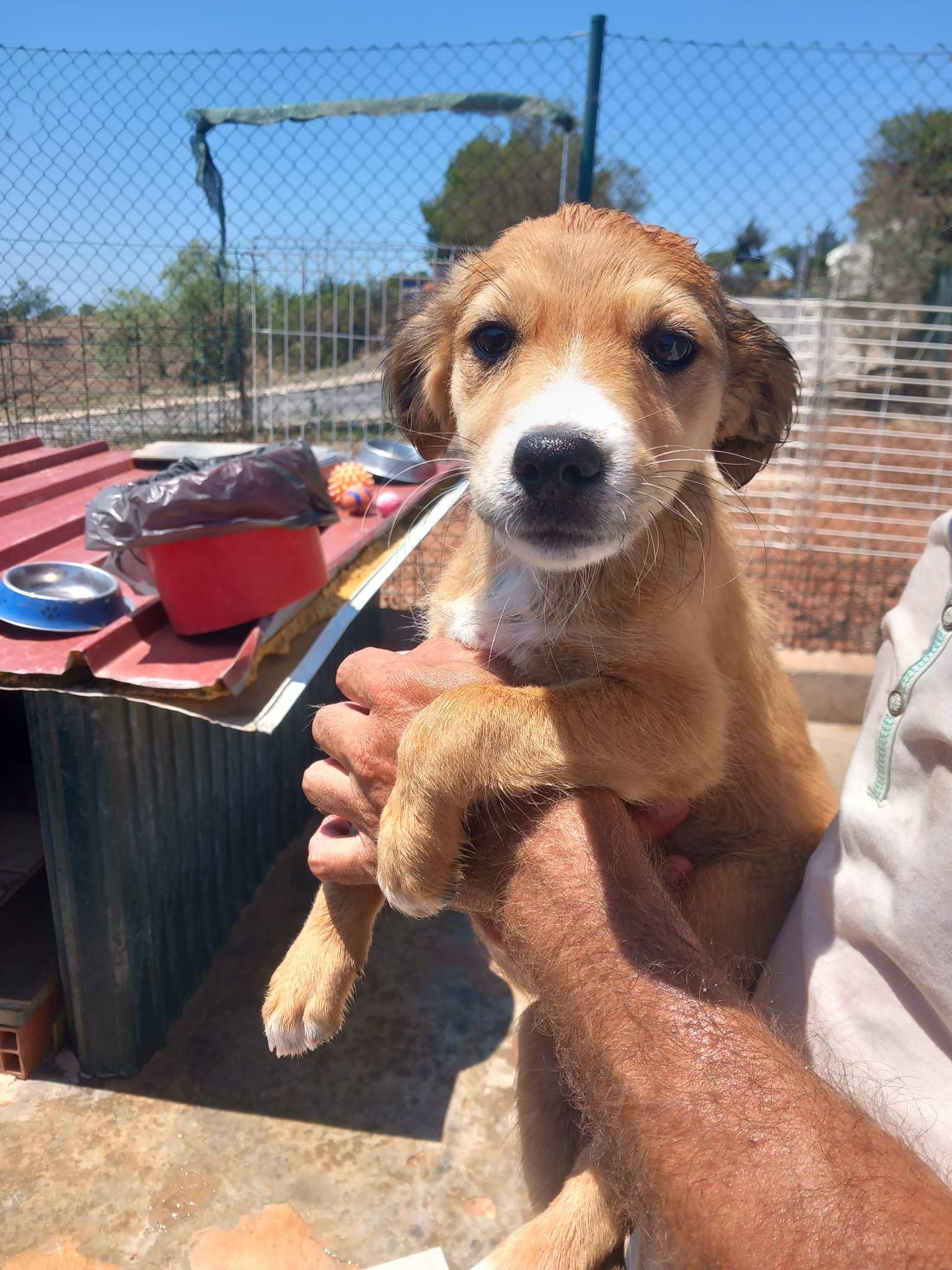 Mara und ihre Geschwister wurden zusammen von einer netten Dame gefunden und ins Tierheim gebracht. Die Geschwister waren anfangs etwas zurückhaltend, sie schienen noch nicht sehr viel Kontakt zu Menschen gehabt zu haben. Mittlerweile sind sie aber zu einer fröhlichen, aufgeschlossenen und verspielten Rasselbande herangewachsen. Die vier teilen sich einen großen Zwinger mit 4 anderen kleinen Welpen und lieben es, den ganzen Tag über zu spielen, in ihrem Minipool zu planschen, oder auch einfach in der Sonne zu dösen. Sie freuen sich über alles und jeden und gehen neugierig auf alle zu. Mara ist die ruhigste der Bande, sie bleibt ganz ruhig sitzen und schmust, sie braucht nicht immer Action.