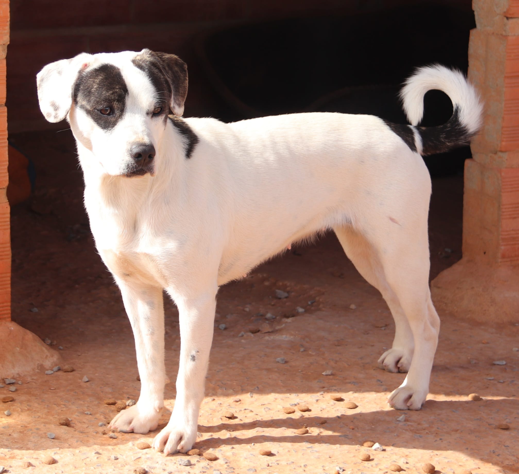 Madonna wurde zusammen mit ihrer Schwester Cher (sie wurde inzwischen in Portugal adoptiert) von ihrem Frauchen im Tierheim abgegeben. Sie hatte die beiden Hündinnen im Welpenalter zu sich genommen, leider kamen die beiden nicht mehr gut miteinander aus. Deshalb hat sie sich entschlossen, gleich beide im Tierheim abzugeben. Diese Unverträglichkeit scheint sich aber nur auf ihre Schwester zu beschränken, mit den anderen Hunden aus dem Tierheim kommt Madonna gut zurecht und auch ihr Zwingerkumpel wurde von ihr freudig empfangen. Madonna ist eine aktive kleine Hündin, für die wir eine liebe Familie suchen.