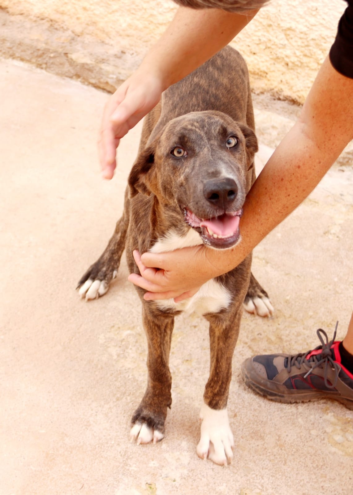 Margo gehört eher in die Kategorie „Riesenbabies“. Die hübsche Hündin wurde uns als Fundhund gebracht, allerdings hegen die Mitarbeiter den starken Verdacht, dass sie von ihren eigenen Besitzern einfach abgeschoben wurde. Margo ist eine sehr aufgeschlossene, eher ruhige und wirklich liebe junge Hündin. Sie ist ein Herdenschutzhund und wird dementsprechend groß werden. Margo wird nicht in eine Etagenwohnung vermittelt und sollte nicht zu Hundenanfängern ziehen. Alle anderen werden in dieser tollen Hündin mit den wunderschönen Augen jedoch eine ideale Begleiterin finden.