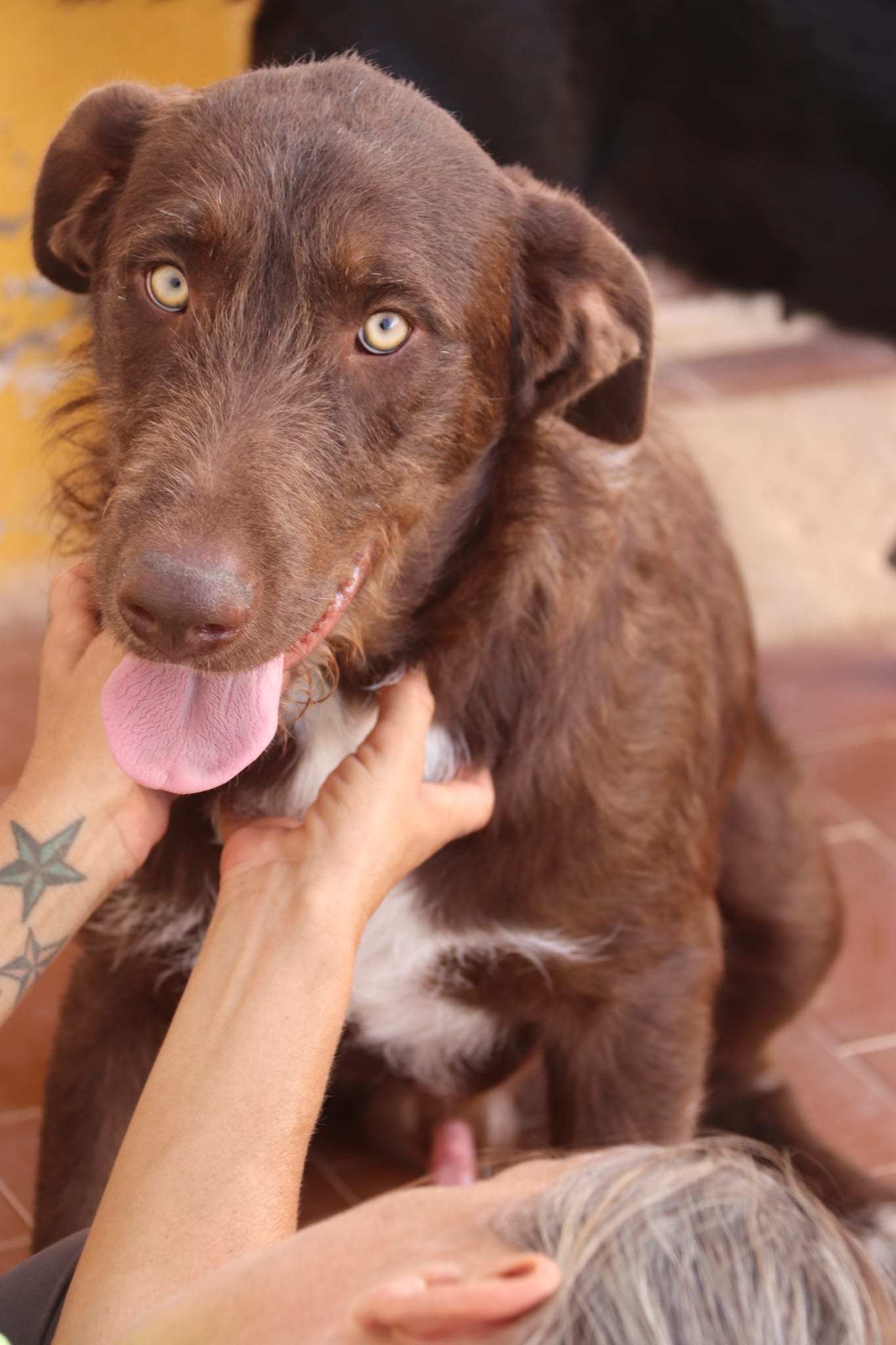 Argos kam zusammen mit seiner Mama Alba in unser Tierheim. Alba hatte nach kurzer Zeit das Glück nach Deutschland reisen zu können, aber ihr Sohn wartet leider immer noch darauf, sein eigenes Zuhause finden zu können. Argos ist ein Riesenbaby mit einem noch grösseren Herzen. Er ist Menschen gegenüber sehr aufgeschlossen und freundlich und liebt auch (standfeste) Kinder sehr. Er ist noch ein kleiner Kindskopf und kann seine Energie im Tierheim nicht ansatzweise abbauen. Argos sucht ein aktives Zuhause, indem er körperlich aber auch geistig ausgelastet wird. Er ist nämlich nicht nur ausgesprochen hübsch, sondern auch ein ganz schlaues Köpfchen. Andere hunde findet er klasse, Katzen müssten noch getestet werden.