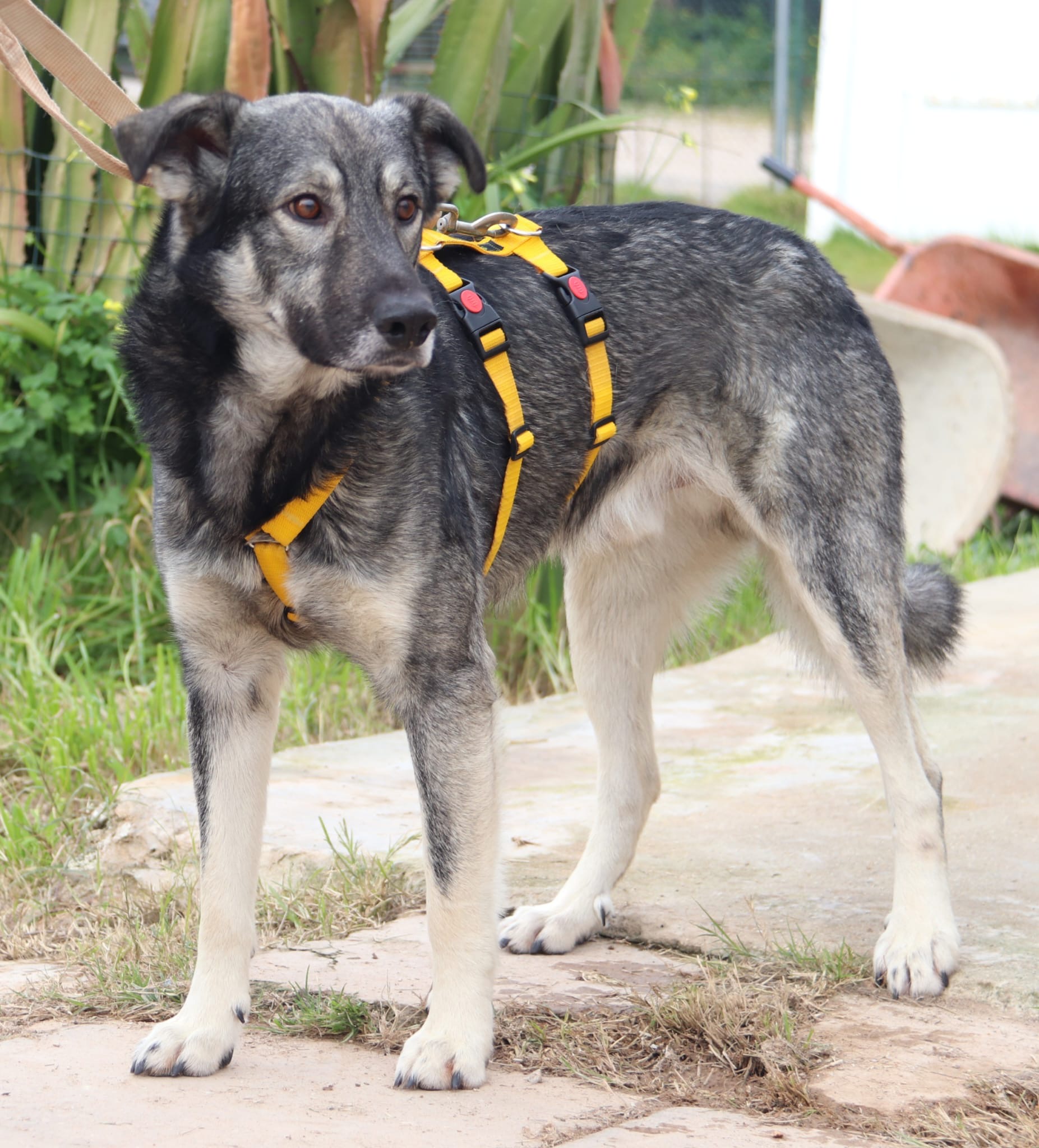 Rodolfo wurde mit einer langen Kordel um den Hals gefunden. Er schien angebunden gewesen zu sein und hat sich dann losreissen können. Rodolfo ist ein sehr sanfter, eher unterwürfiger junger Rüde, der bisher noch nicht allzu viele schöne Erfahrungen gemacht zu haben scheint. Er ist Menschen gegenüber anfangs sehr unsicher und vorsichtig, dabei aber sehr sanft. Generell macht ihm alles erstmal etwas Angst, aber Schritt für Schritt wagt er sich nun in sein neues Leben und entdeckt vorsichtig aber neugierig seine neue Umgebung. Rodolfo ist einer der Fundhunde, bei denen wir fest hoffen, dass sich seine ehemaligen Besitzer nie melden um ihn zu suchen.
