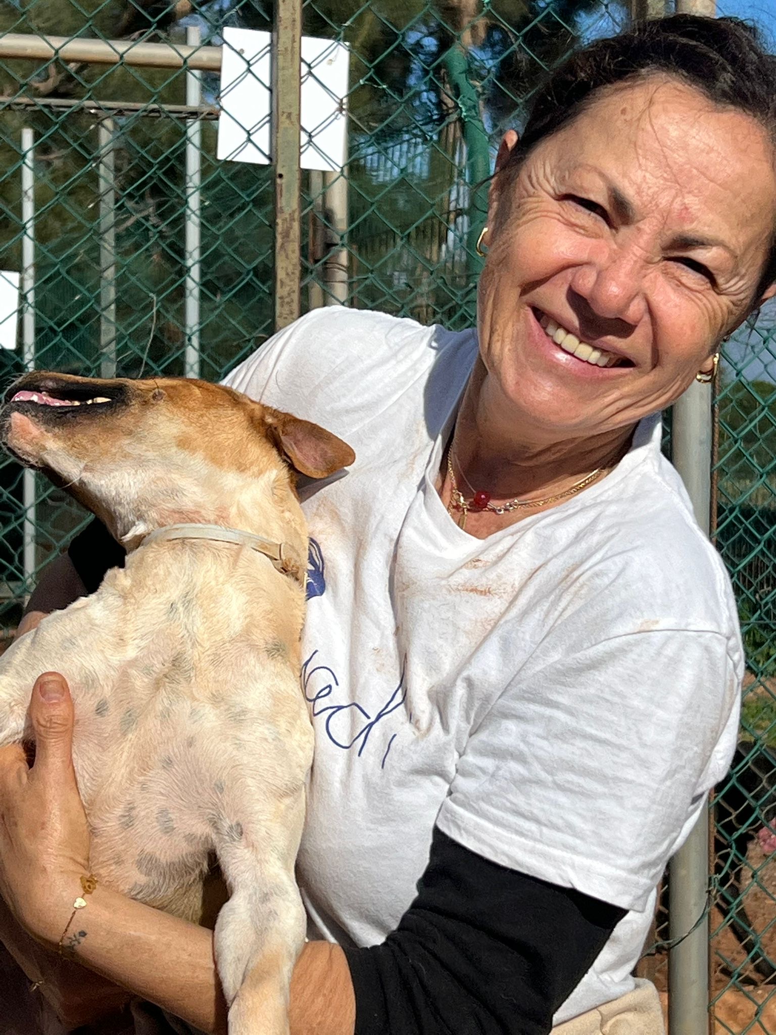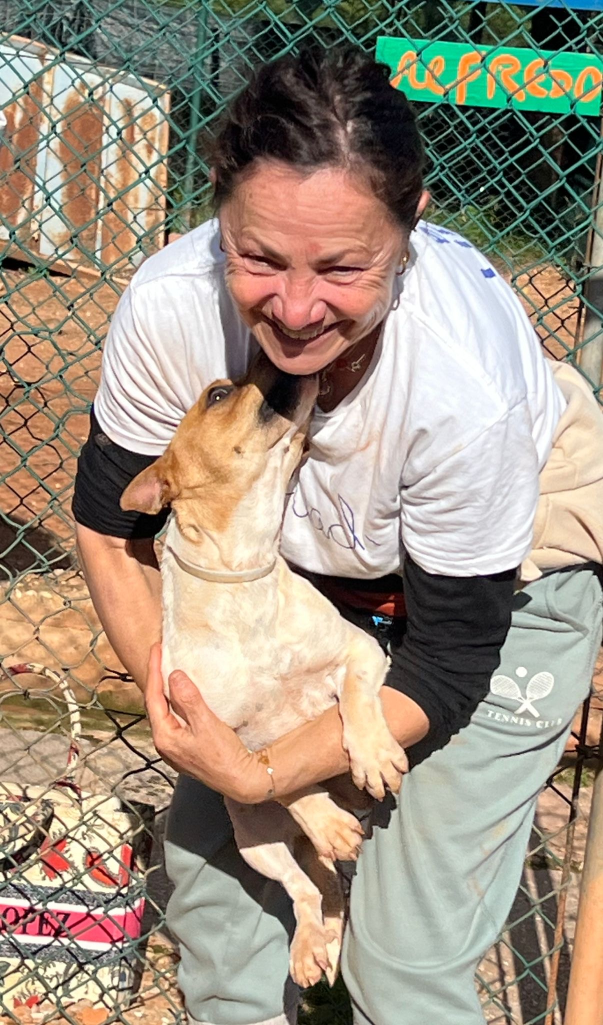 Bombon wurde auf Strasse von netten Touristen aufgelesen. Sie lief durch die Fußgängerzone und begrüßte alle Passanten sehr freundlich. Als sie im Tierheim ankam, wurde ihr Profil auf allen Kanälen geteilt und sehr bald meldeten sich mehrere Personen, um uns den Kontakt ihrer Besitzer weiter zu geben. Leider wollten diese die kleine Bombon allerdings nicht wiederhaben. Sie waren einige Wochen vorher umgezogen und Hundehaltung ist in der neuen Wohnung nicht gestattet. Also haben sie die Kleine kurzerhand raus gesetzt. Sie wurde zwar vor dem Haus noch weiterhin gefüttert, war aber ansonsten Tag und Nacht auf sich allein gestellt. Bombon ist eine sehr freundliche, fröhliche und aufgeschlossene kleine Hündin. Sie versteht sich sehr gut mit anderen Hunden und auch Katzen findet sie ganz toll.